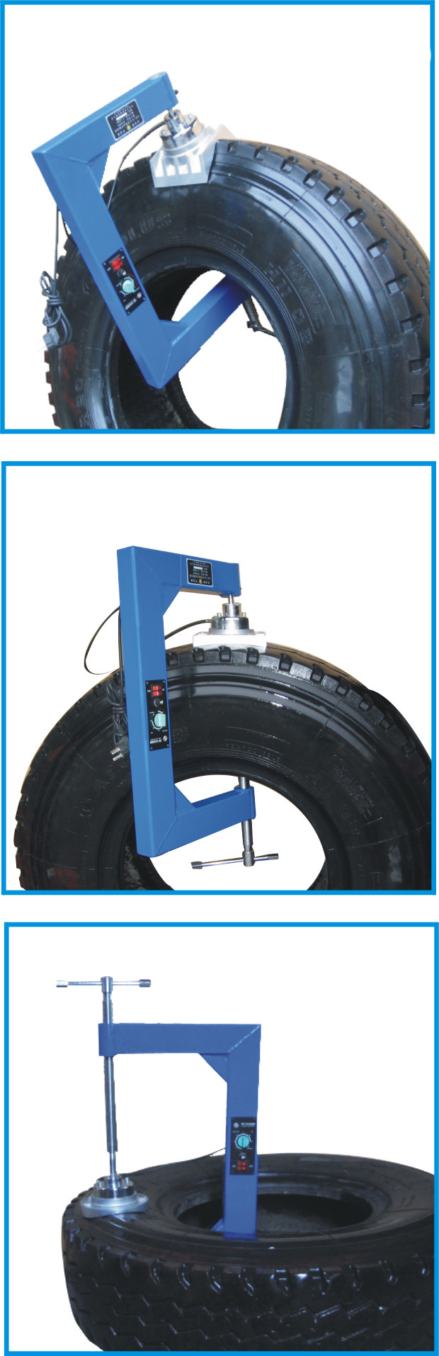 6. Wenn die Vulkanisierung (10 Minuten) abgeschlossen wird, lösen Satz entsprechend dem Vulkanisierungsbereich, manuell Drehung weg vom Netzschalter, die Druckreifenstange, den Reifen zu entfernen und den gesamten Reifenreparaturprozeß abzuschließen.