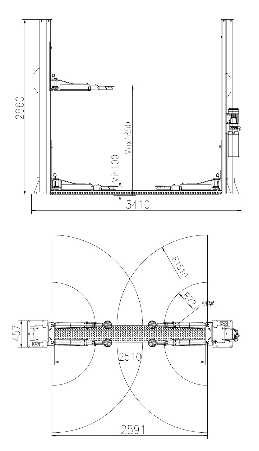 1) die Hebebühne mit zwei Posten hat die Vorteile der einfachen Operation, der Sicherheit und der Zuverlässigkeit,
