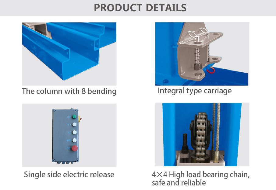 1) hat die Hebebühne mit zwei Posten die Vorteile der einfachen Operation, der Sicherheit und der Zuverlässigkeit,