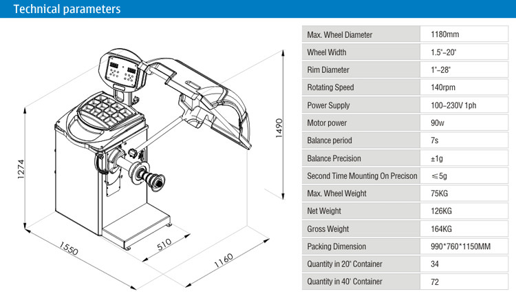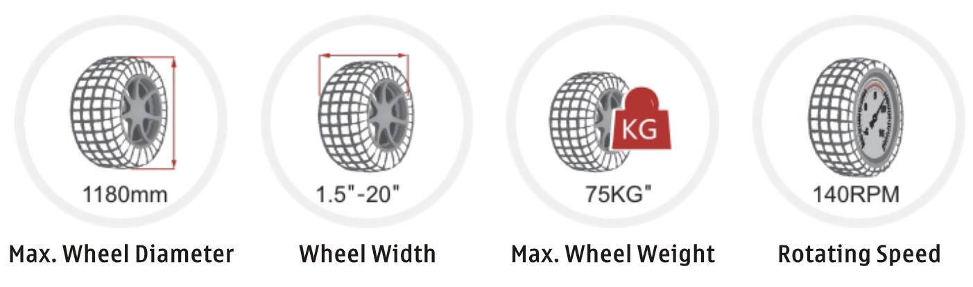 | Maximaler Raddurchmesser | 1000mm | 1180mm | 1180mm | 1180mm | 1180mm |